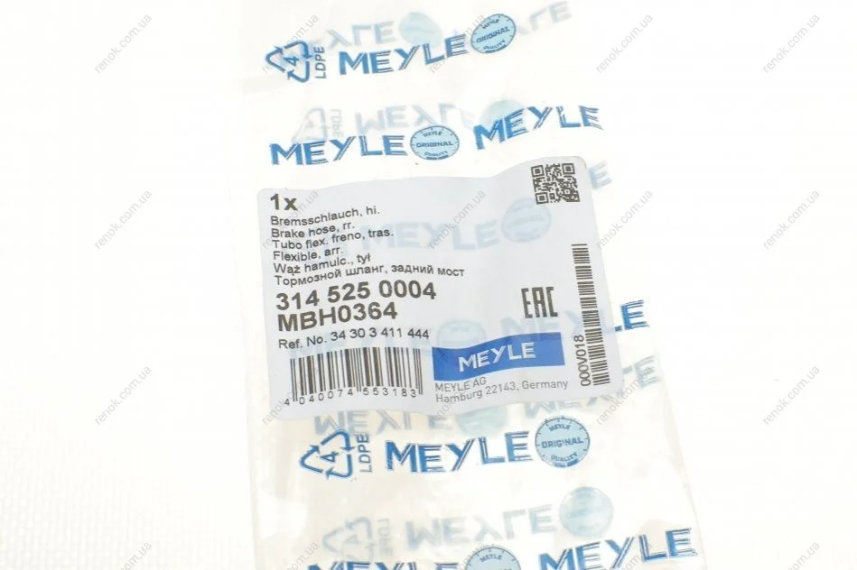 Шланг тормозной (задний) BMW X3 (E83) 03-11 (L=540mm) M54/M57/N46/N52 MEYLE 314 525 0004 (34303411444)