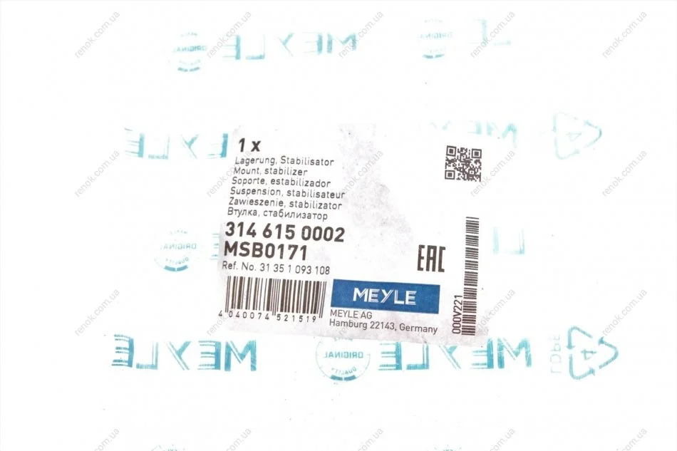 Аналоги "314 615 0002 MEYLE":