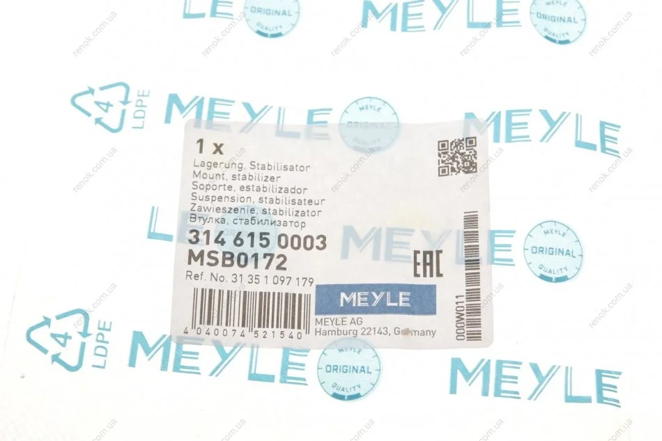 Аналоги "314 615 0003 MEYLE":