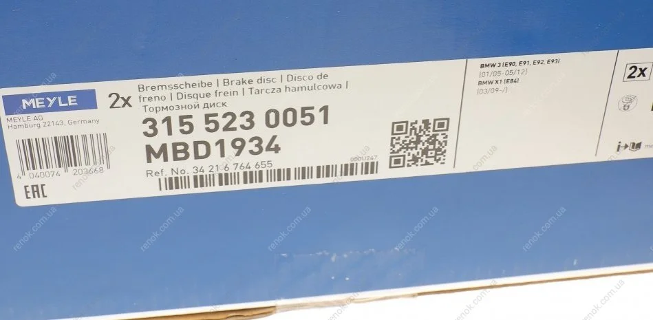 Аналоги "315 523 0051 MEYLE":