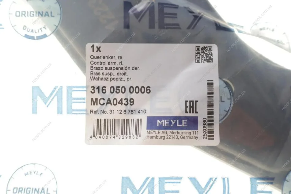 Важіль підвіски MEYLE 316 050 0006 (31126761410, 31124015708)