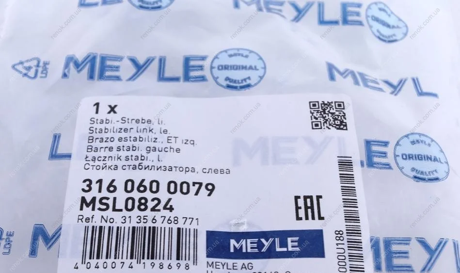 Тяга стабилизатора (переднего) (L) BMW 3 (E90/E91/E92)/X1 (E84) 05-15 MEYLE 316 060 0079 (31356768771)