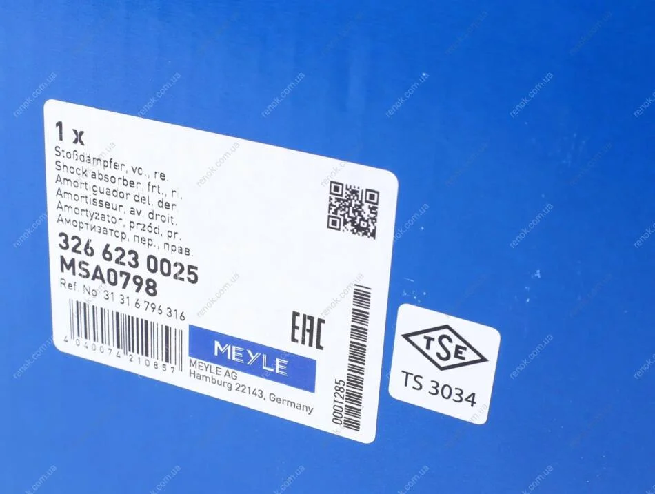 Амортизатор (передний) BMW X3 (F25)/X4 (F26) 10-18 (R) MEYLE 326 623 0025 (31316796410, 31316796316)