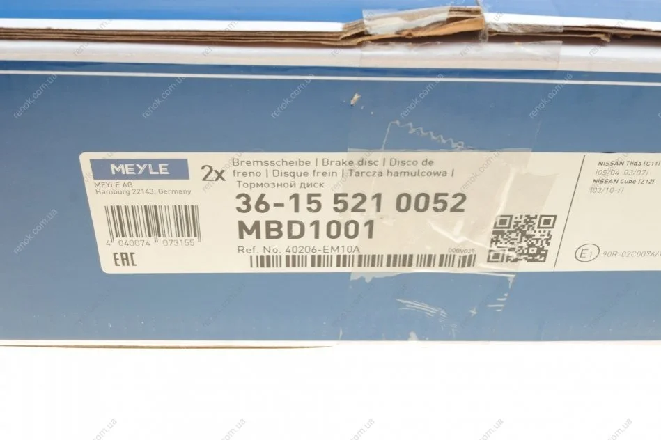 Диск тормозной (передний) Nissan Cube/Tiida 06-13 (279x24) MEYLE 36-15 521 0052 (40206EM10A, 40206ET01C, 40206ET02C)