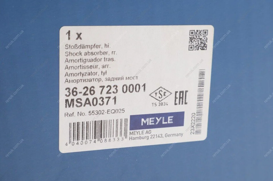 Амортизатор (задний) Nissan X-Trail 01-13(R) MEYLE 36-26 723 0001 (553028H304, 553028H326, 553028H600)