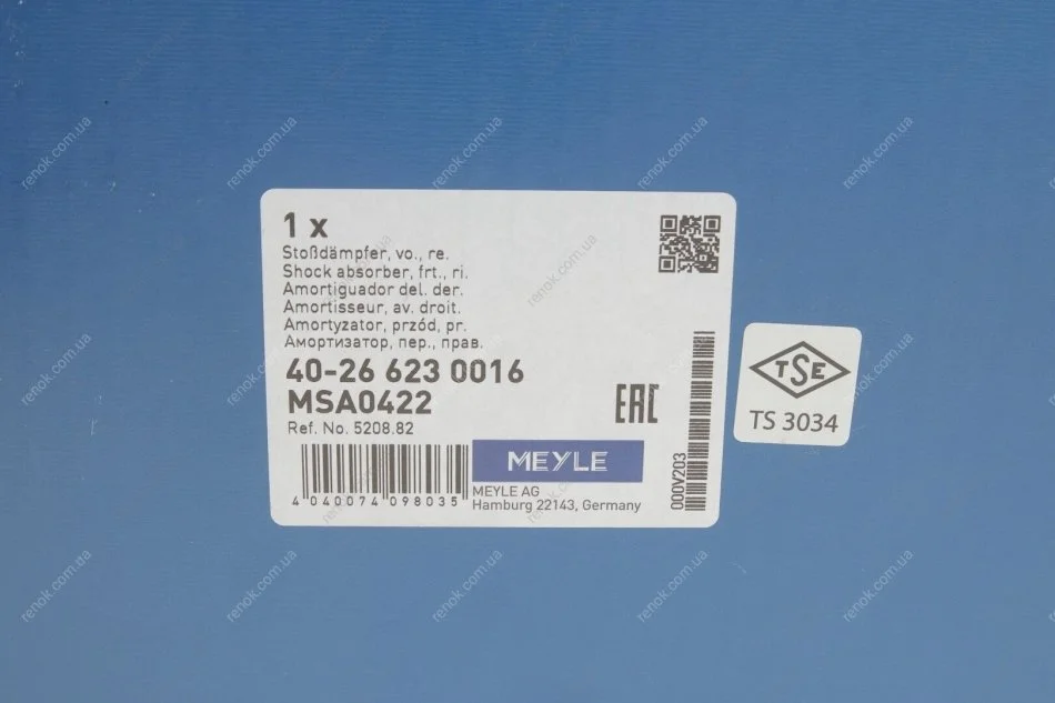 Амортизатор (передний) Citroen Berlingo/Peugeot Partner 08-(R) MEYLE 40-26 623 0016 (520884, 520882)