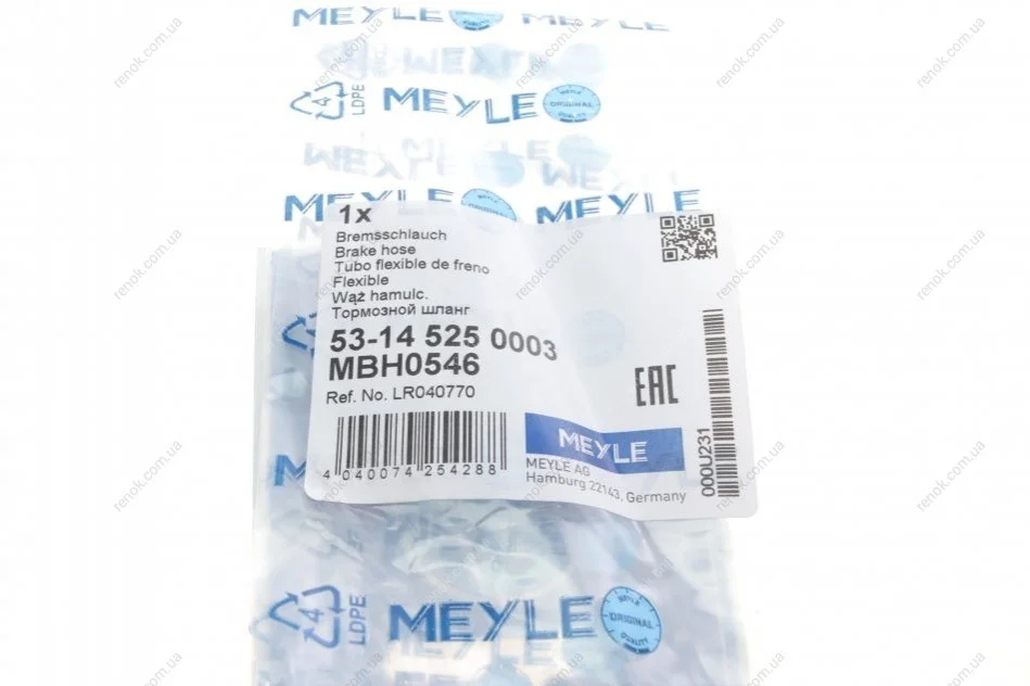 Шланг тормозной (передний) Land Rover Freelander 2.0/2.2D/3.2 06-14 (L=443mm) MEYLE 53-14 525 0003 (lr001036, lr006689, lr008148)