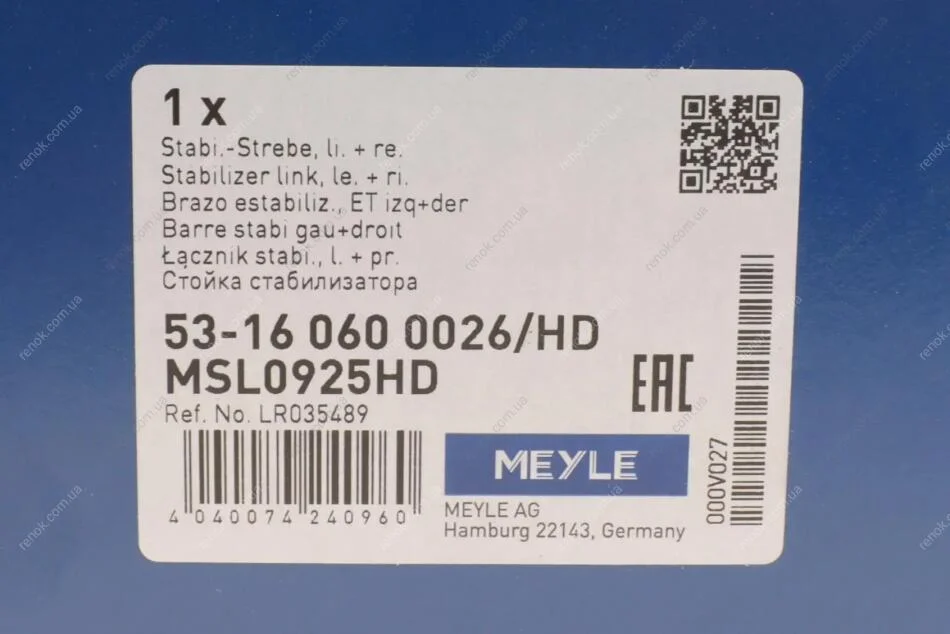 Тяга стабилизатора (переднего) Land Rover Discovery/Range Rover 2.0-5.0D 12- MEYLE 53-16 060 0026/HD (lr035489)