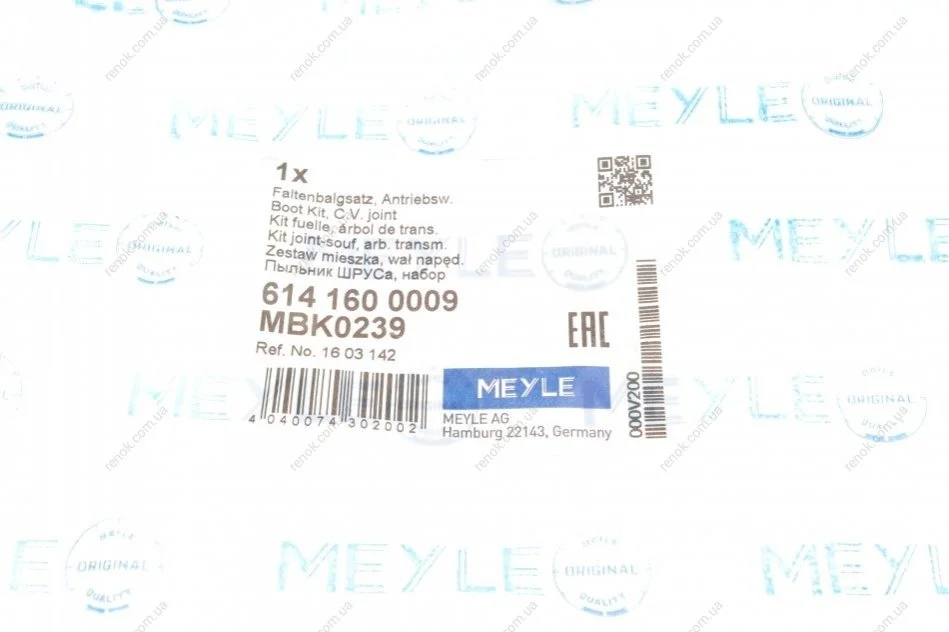 Аналоги "614 160 0009 MEYLE":