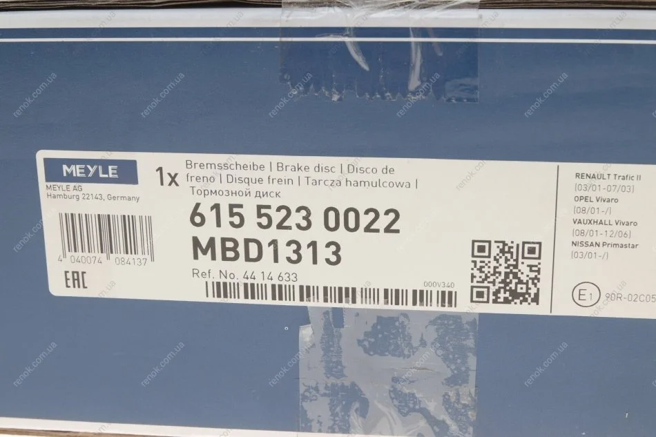 Диск тормозной (задний) Renault Trafic 01-(280х12) (с подшипником) MEYLE 615 523 0022 (8671019313, 8200228610, 8200050013)