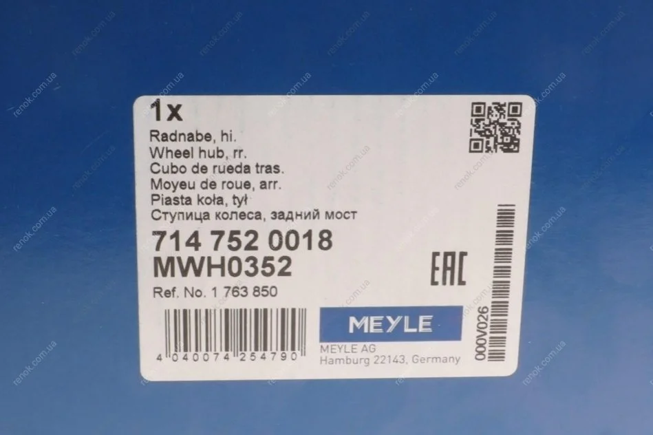 Подшипник ступицы MEYLE 714 752 0018 (ktbk211a049aa, 1763850)
