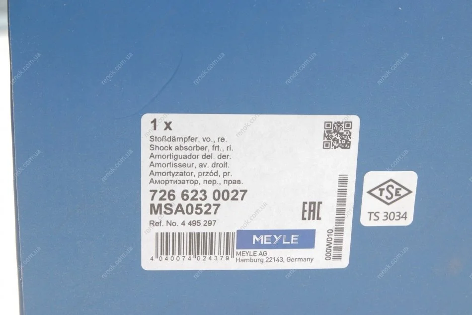 Амортизатор (передний) Ford Connect 02-13 (высокая база) (R) MEYLE 726 623 0027 (2T1418045AH, 2T1418045BJ, 2T1418045CH)