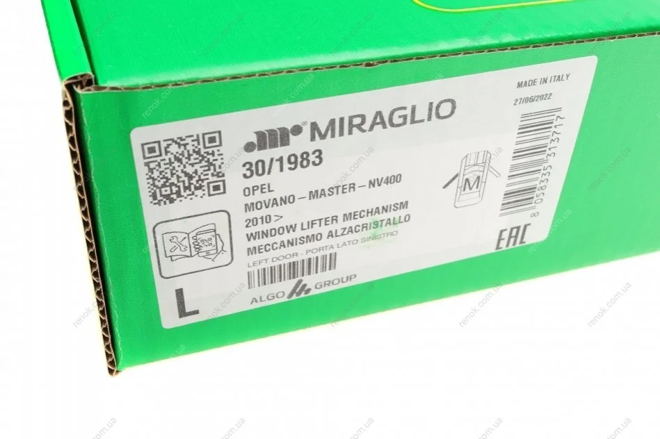 Стеклоподъемник (передний) Renault Master III/Opel Movano 10- (L) (электро) (без двигателя) MIRAGLIO 30/1983 (807210008R, 8070100Q0H, COMPLETESYSTEM)