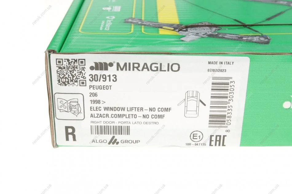 Стеклоподъемник (передний) Peugeot 206 98-07 (R) (электро) (с моторчиком) MIRAGLIO 30/913 (92220000, 9222F7, 9222E5)
