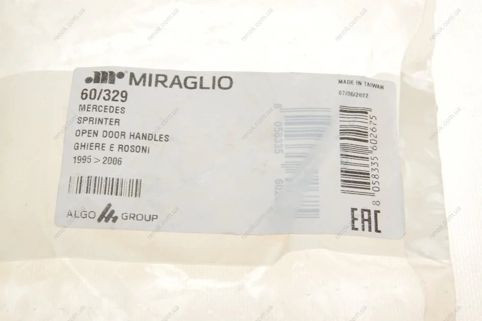 Бренд MIRAGLIO наравне с другими тремя брендами LIFT TEK, ELECTRIC-LIFE И PMM принадлежит компании ALGO GROUP, производящей и поставляющей стеклоподъемники и дверные ручки и задвижки для автосборочных предприятий и на рынок послепродажного обслуживания автомобилей. Компания образовалась путем слияния нескольких компаний и, в общей сложности более 60 лет опыта, является лидером на европейском рынке. Сейчас в Европе действуют две фабрики – в Италии и Польше.