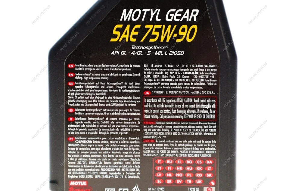 Масло 75W90 Motyl Gear (1L) (105783) (API GL-4/GL-5) (100093) MOTUL 317001