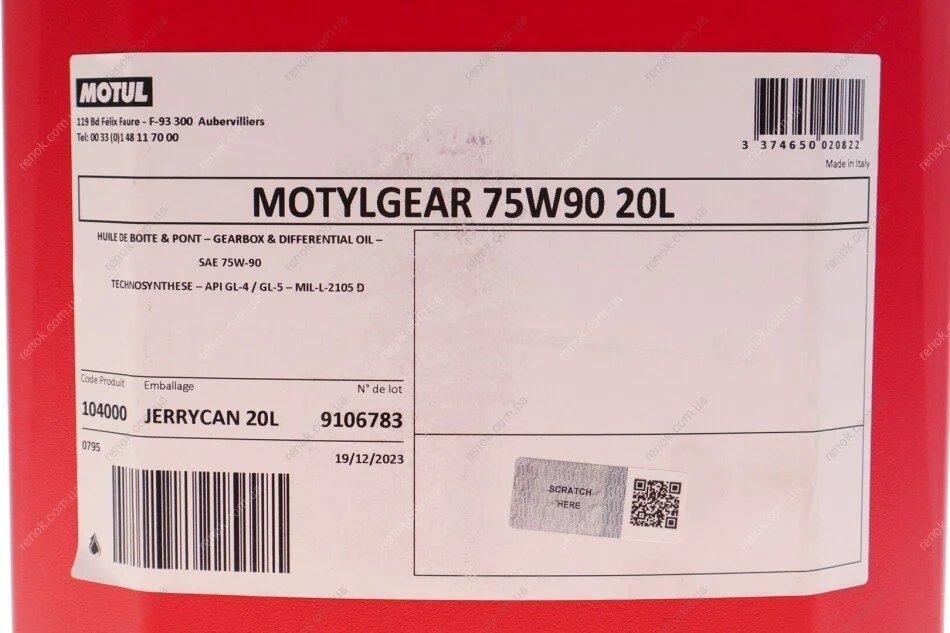Масло 75W90 Motyl Gear (20L) (API GL-4/GL-5) (104000) MOTUL 317022