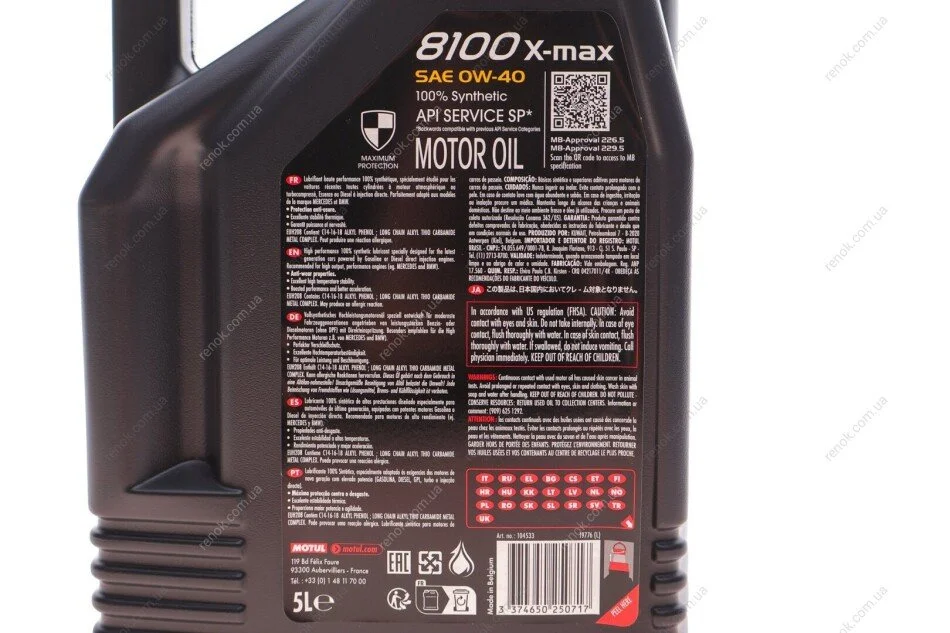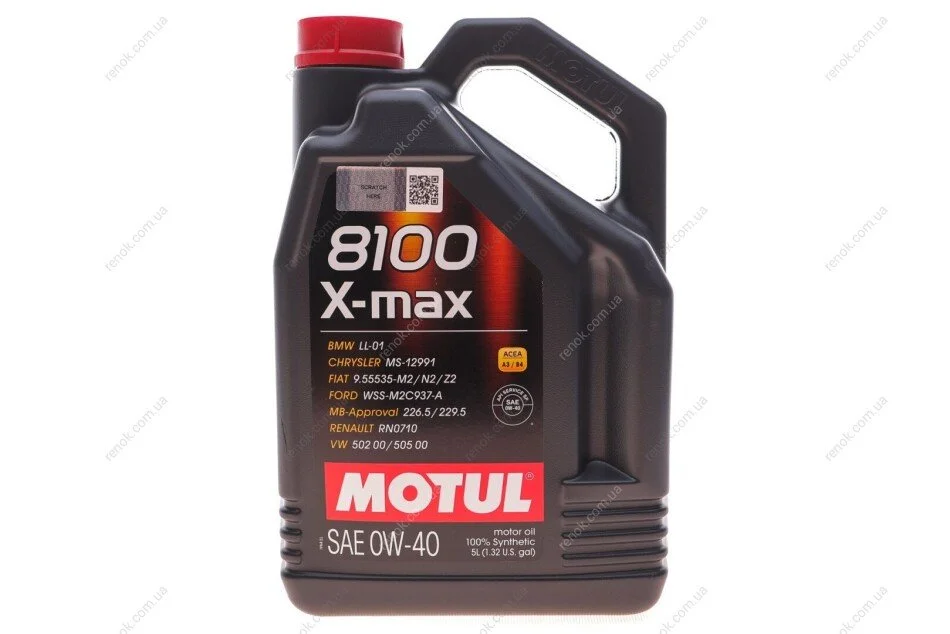 Масло 0W40 8100 X-max (5L) (MB 229.5/VW502.00/505.00/VOLVO VCC 95200356/LL-01) (104533) MOTUL 348206
