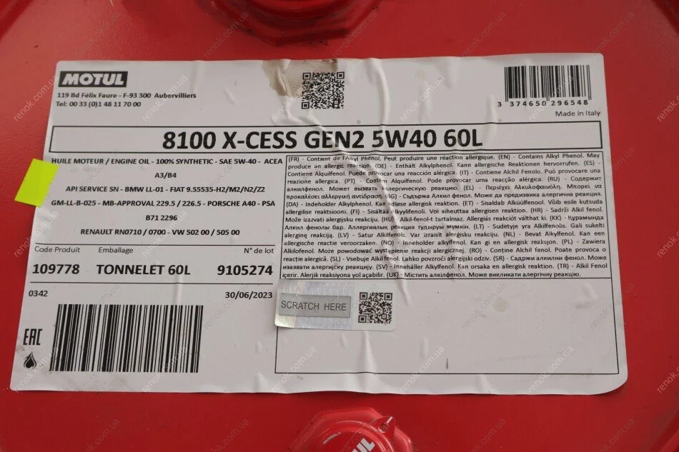 Масло 5W40 X-cess 8100 gen2 (60L) (VW 502 00/505 00/MB 229.5/LL-01/RN0710-0700/B71 2296) (109778) MOTUL 368204 gen2