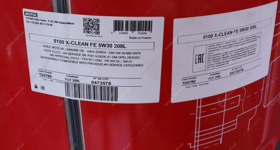 Олива моторна 100% синтетична д/авто 8100 X-CLEAN FE 5W30 208L MOTUL 814178