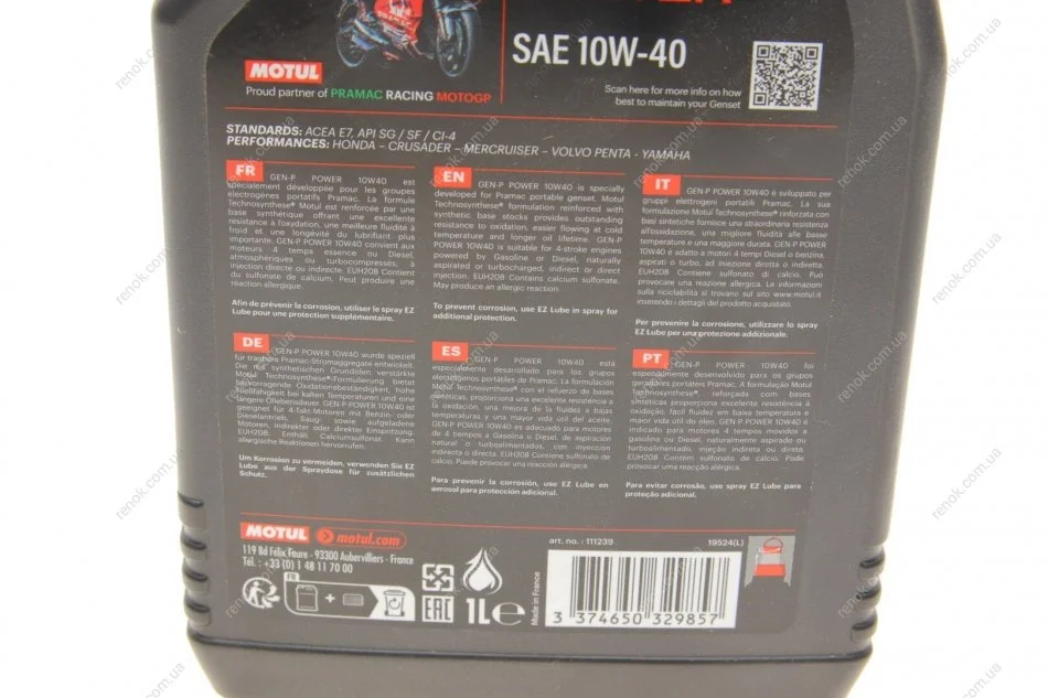Олива для 4-х тактних двигунів Technosynthese /Gen-P Power 10W40 1L/111239 MOTUL 835101