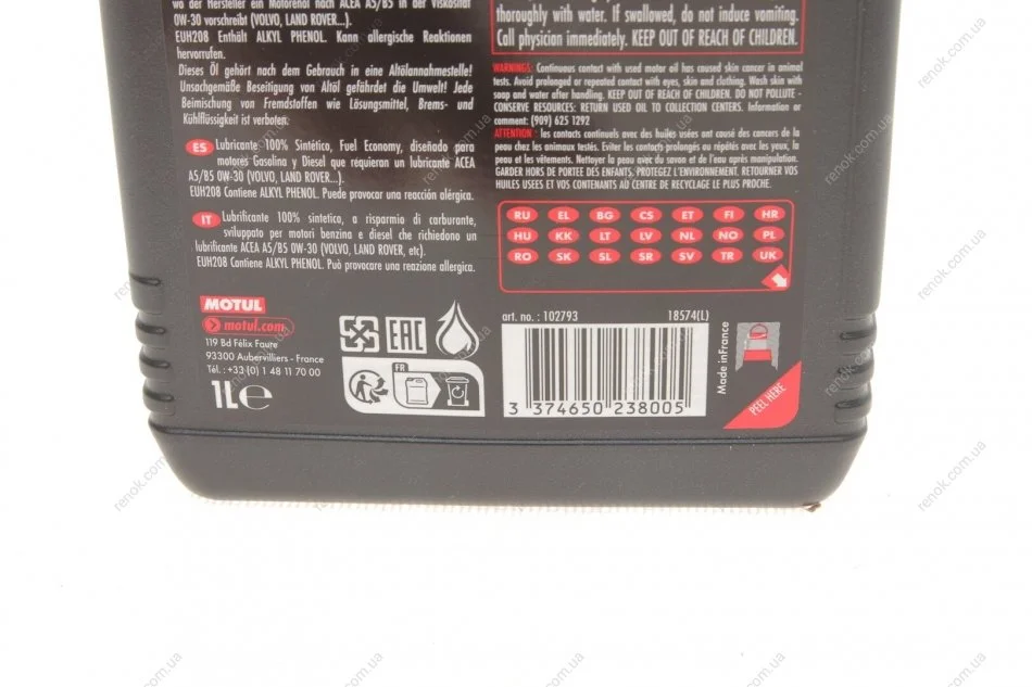 Масло 0W30 ECO-nergy 8100 (1л) (VCC 95200377) (102793) MOTUL 872011