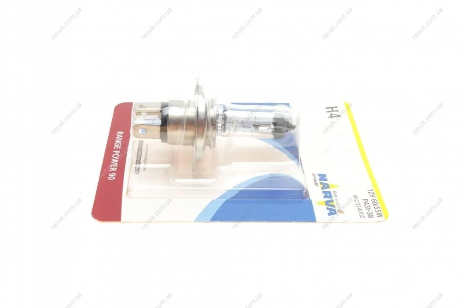 Автолампа H4 12V 60/55W P43t Range Power 90 (блистер/1шт) NARVA 480034000