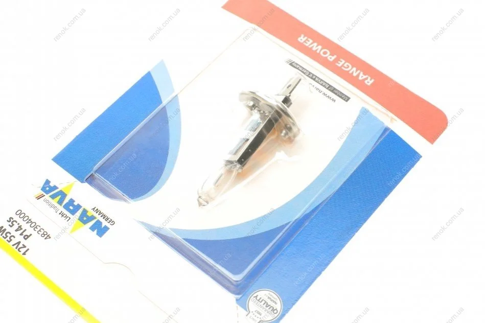 Автолампа H1 12V 55W P14.5s Range Power (+ 30%) (блистер/1шт) NARVA 483304000