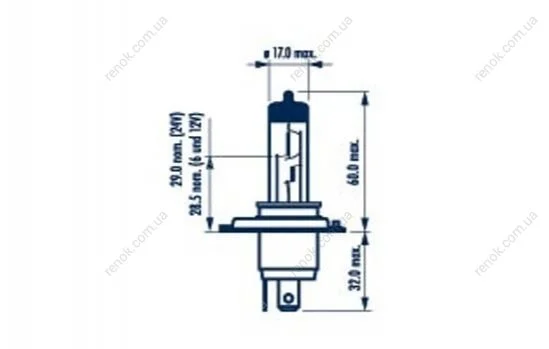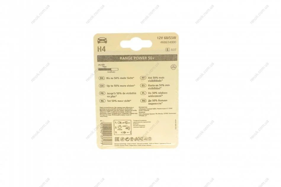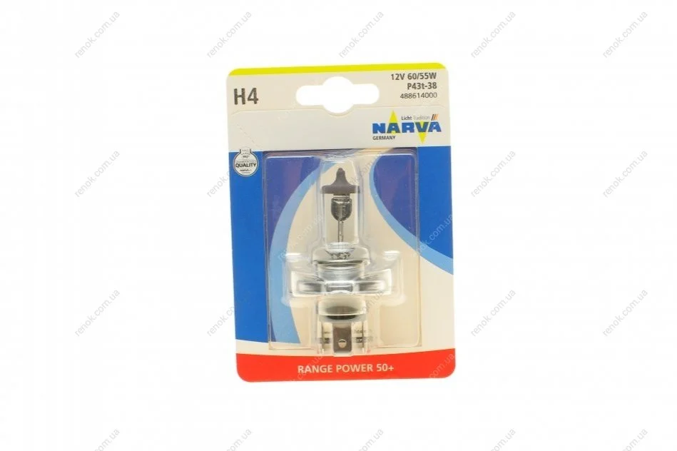 Автолампа H4 12V 60/55W P43t Range Power 50+ (блистер/1шт) NARVA 488614000