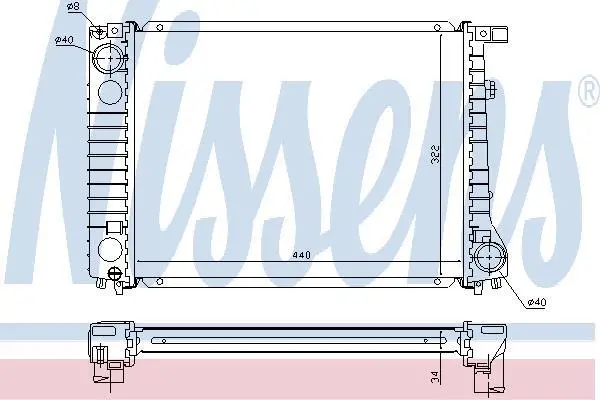 Радіатор охолодження двигуна BMW 3 SERIES E30 (1983) 320I 2.0 NISSENS 60797A (17111712821, 17111712823, 17111719256)