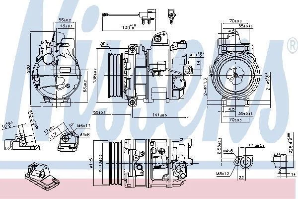 LAND ROVER Компресор кондиціонера DISCOVERY III 2.7 04- NISSENS 890082 (4471808380, 4471808381, 4471808382)