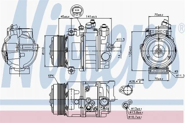 Компрессор кондиционера NISSENS 89039 (a0002306411, A0002309011, A0022301911)
