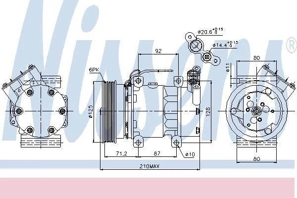 Компрессор NS KUBISTAR(03-)1.2 i(+)[OE 77 00 273 801] NISSENS 89064 (2763000QAE, 8800315744, 8200953358)