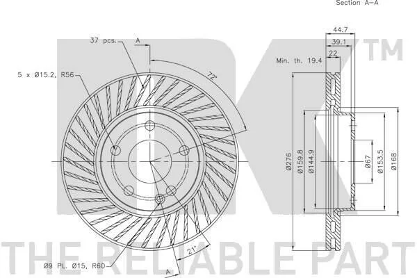 Гальмівний диск NK 203372 (1694210112, 1694210812, A1694210112)