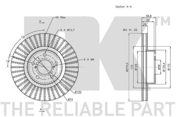 Диск гальмівний пер. Subaru Legacy 2.0IT 16V 91- /Impreza 1.6i,1.8i16V NK 204406 (26300AE050, 26300AE070, 26300AE071)