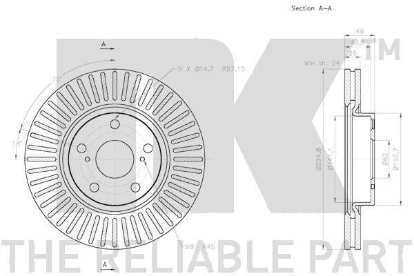 Гальмівний диск NK 2045125 (43512YZZAA, 4351205080, 435120F010)