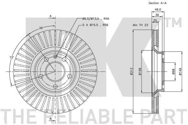 Диск гальмівний P Audi A4,A6Skoda Superb 1,8T-2,8 04.97- (312x25 NK 204773 (3B0615301B, 4B0615301A, 8D0615301J)
