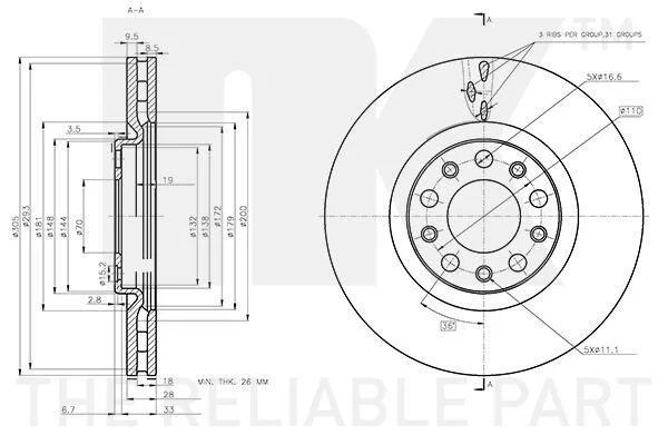 Диск гальмівний невентильований NK 312370 (51937304, 51963548, 52056675)