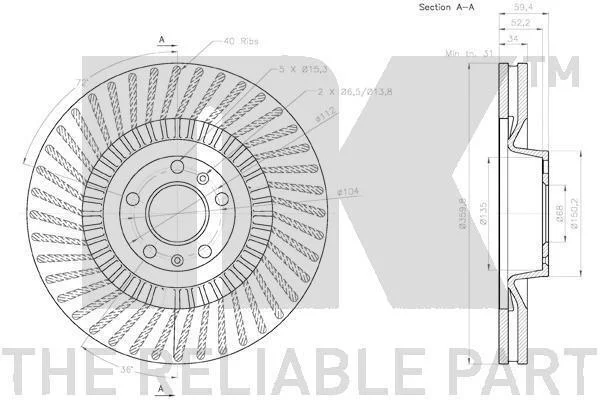 Диск гальмівний невентильований NK 3147125 (3D0615301F, 4E0615301G, 4E0615301P)