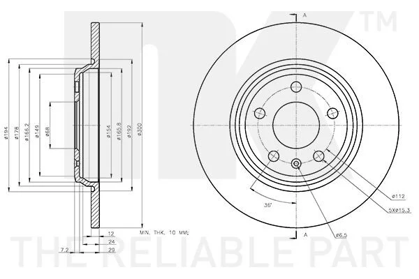 Диск гальмівний невентильований NK 3147183 (80A615601, 80A615601B, 8W0615601C)
