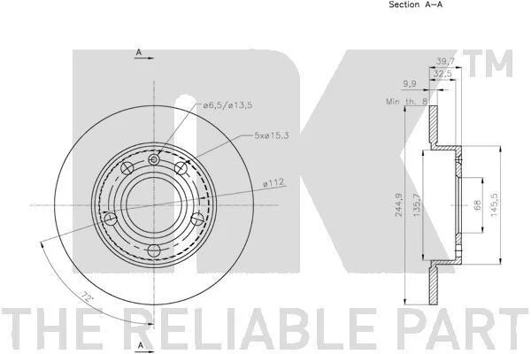 Диск гальмівний невентильований NK 314778 (895615601A, 8E0615601B, 8E0615601P)