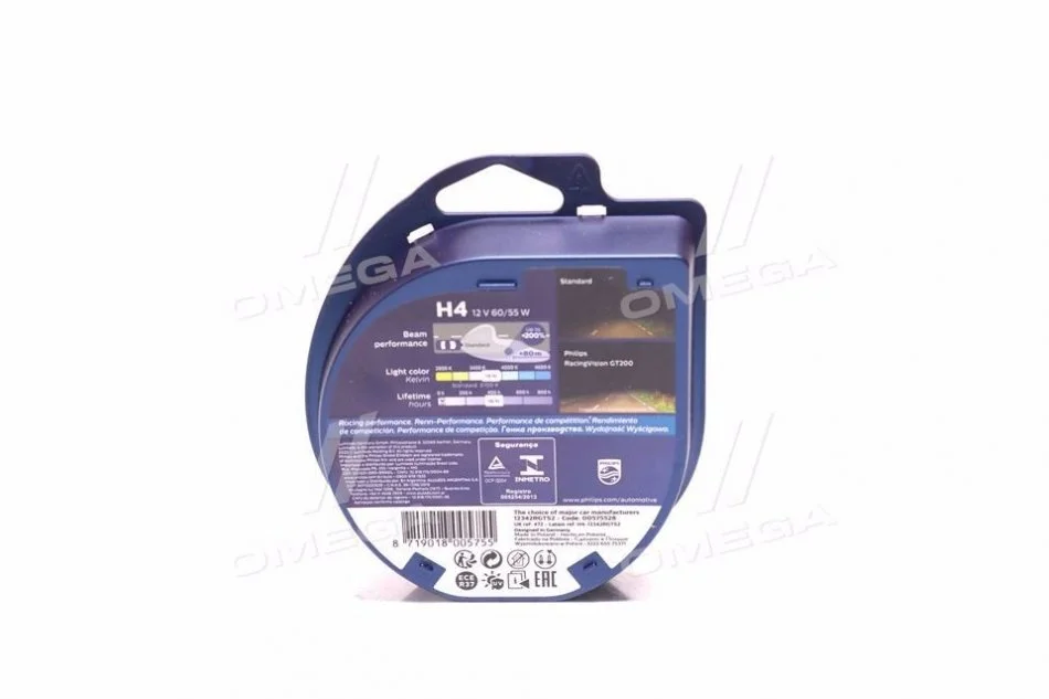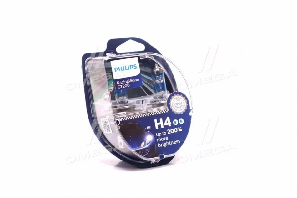 Лампа накаливания H4 RacingVision GT200 +200 12V 60/55W P43t-38 (комплект) PHILIPS 12342RGTS2 (n0177632, N0177632Z, N0177636)