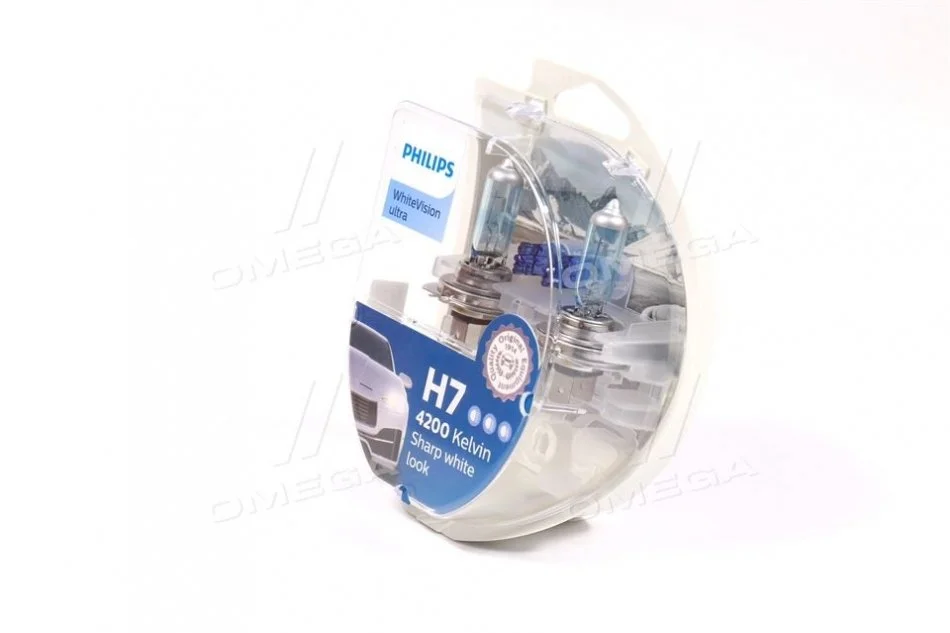 Лампа накаливания H7 12V 55W PX26d H7 WhiteVision ULTRA +60 (4200K) (компл) PHILIPS 12972WVUSM (621697, 262959F500, 7701040849)