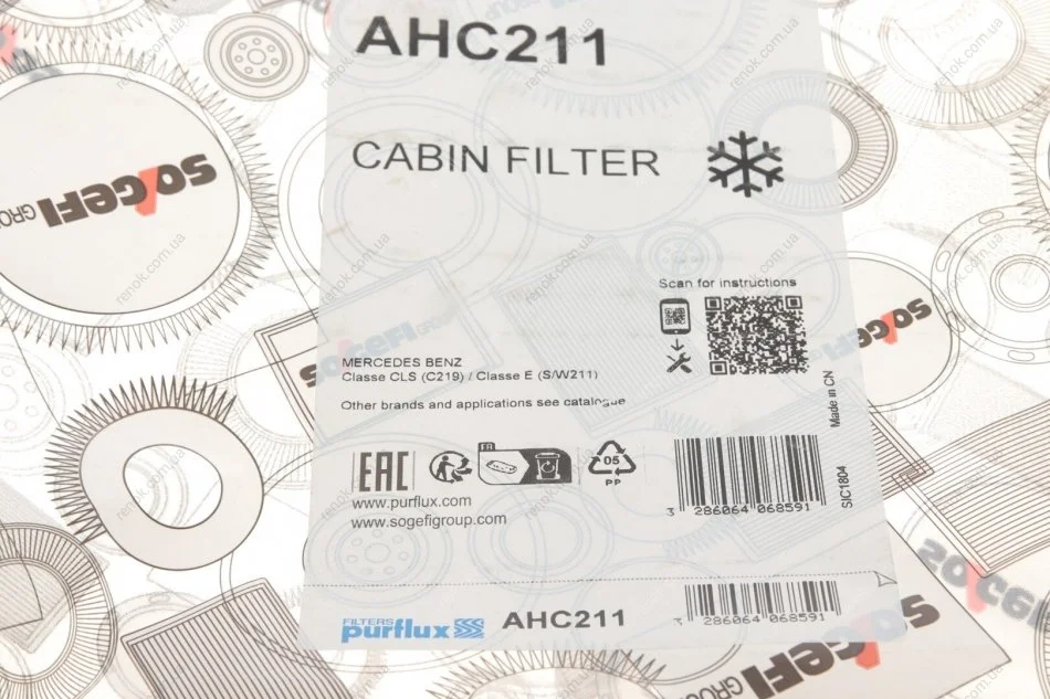 Фильтр салона MB E-class (W211) (угольный) Purflux AHC211 (2118300018, 2118300218, 2118300418)