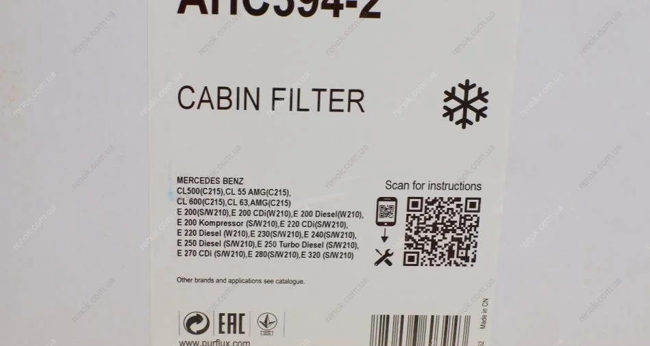 Фильтр салона MB E-class (W210)-00 (угольный) (к-кт) Purflux AHC394-2 (2108300218, 2108300318, 2108301118)