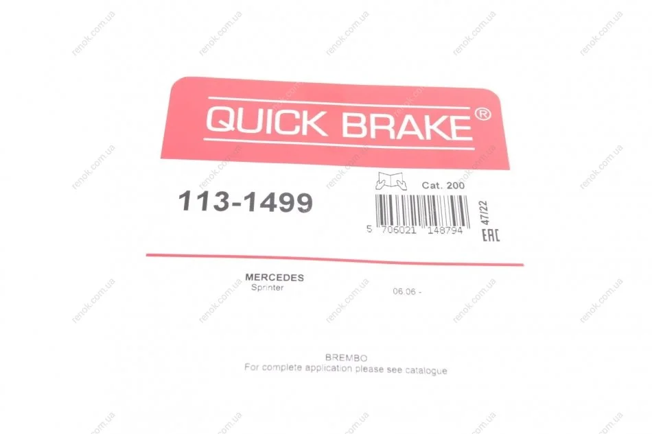 Направляющая суппорта (переднего/к-кт) MB Sprinter/VW Crafter 06-20 QUICK BRAKE 113-1499