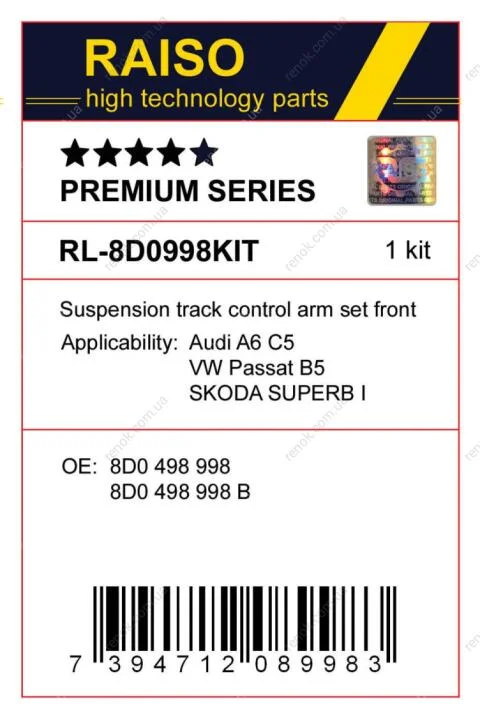 К-кт важелів підвіски перед. Audi A6 C5/Superb I/Passat B5 (з товстим пальцем, конус 21мм) RAISO RL8D0998SKIT