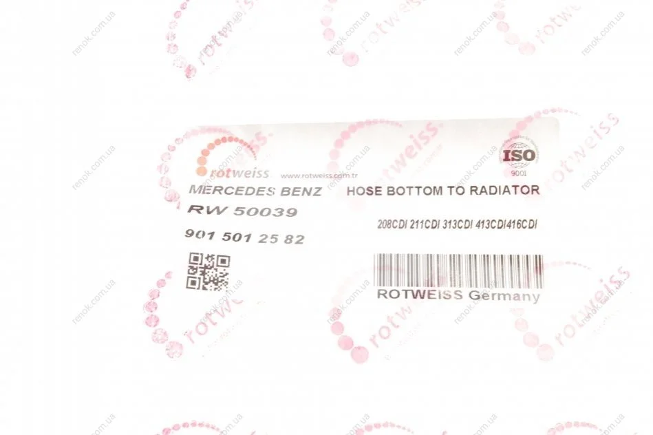 Патрубок радиатора MB Sprinter 2.2/2.7TDI 95-06 (малый) (OM611/OM612) ROTWEISS RW50039 (a9015012582, 9015012582)