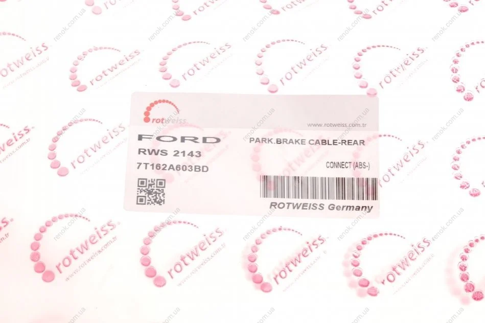 Трос ручника (задний) Ford Connect 02- (-ABS) (высокая база) (барабанный тормоз) ROTWEISS RWS2143