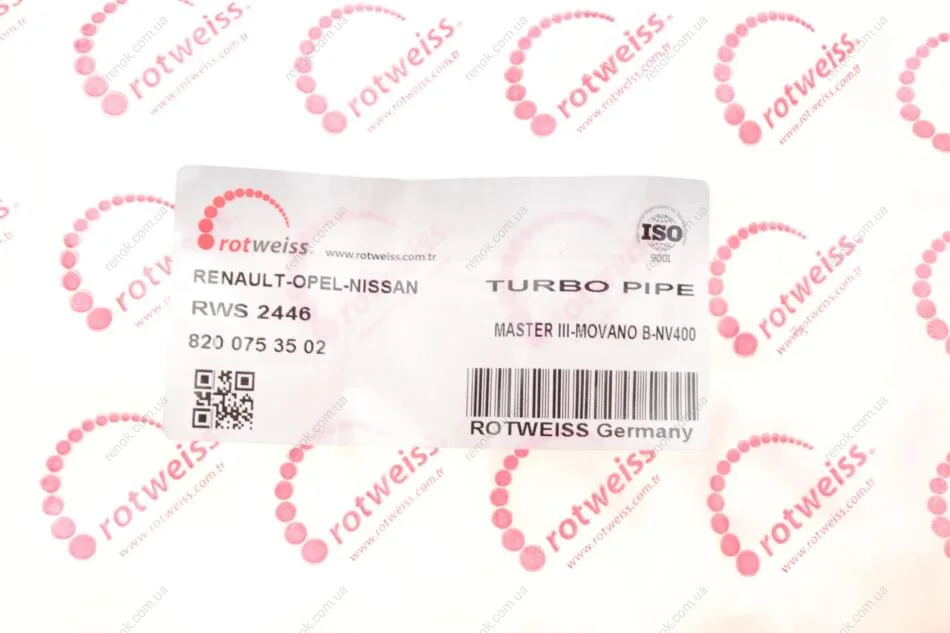 Патрубок интеркулера Renault Master III/Opel Movano B 2.3dCi 10-(R) ROTWEISS RWS2446 (144605593R, 1446300Q1N, 8200753502)